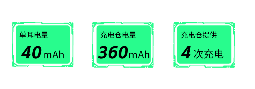 聚合物锂电池 5V,40 mAh(耳机)/360 mAh(充电盒)